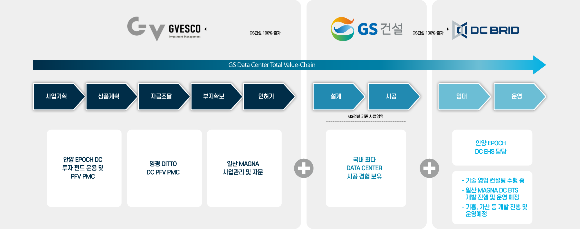 GS DATA CENTER TOTAL VALUE-CHAIN을 구축하여 고객 여러분께 DATA CENTER 관련 TOTAL SOLUTION을 제공해 드리고 있습니다.